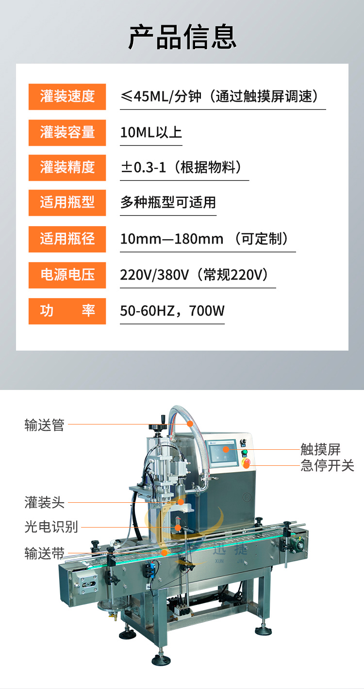 單、灌裝準(zhǔn)確、維護(hù)方便等特點。該設(shè)備整機(jī)304不銹鋼制作,與物料接觸面均為食品級材質(zhì)。料箱可配