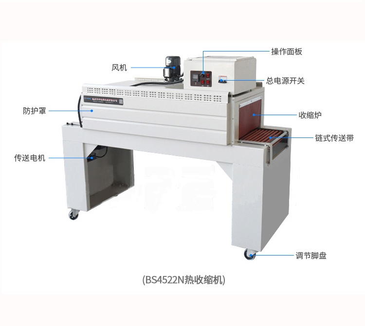 自動塑料膜熱收縮包裝機結構緊湊占地面積小,非常適合配套自動包裝流水線完成產品的自動無人化包裝,適合于單個物品包裝或有底托物品包裝。