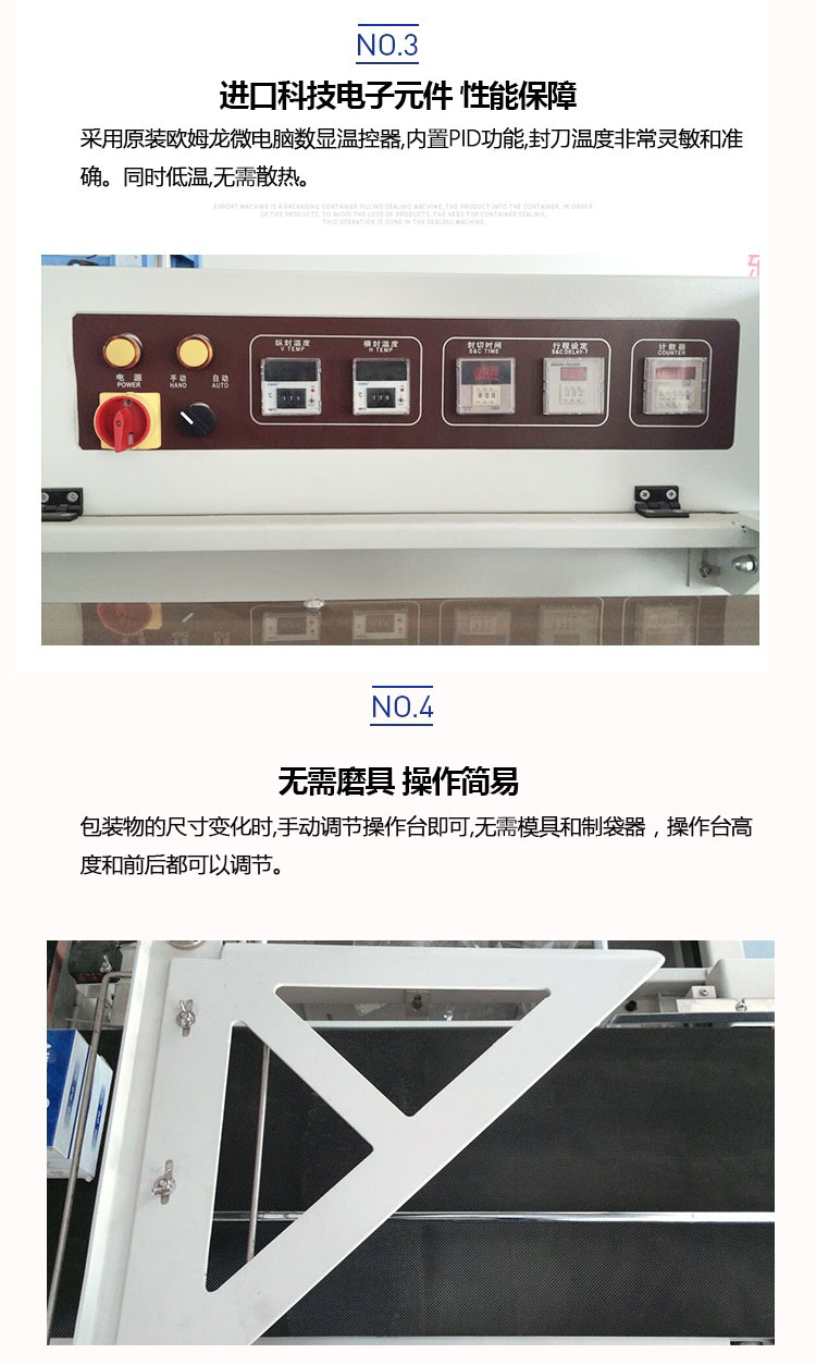 采用國際先進控制元件;封刀采用特殊設計,封口牢固、不開裂、不粘刀;