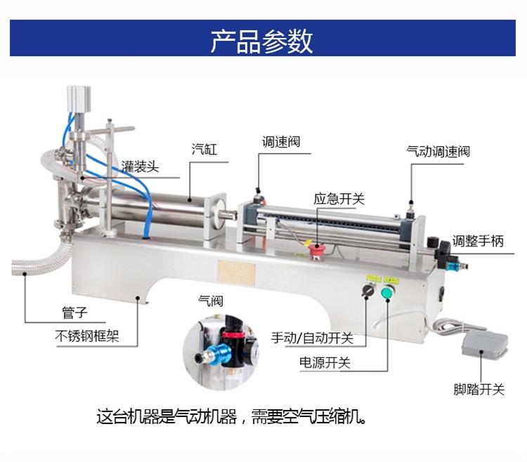 小型半自動單頭液體灌裝機設備細節