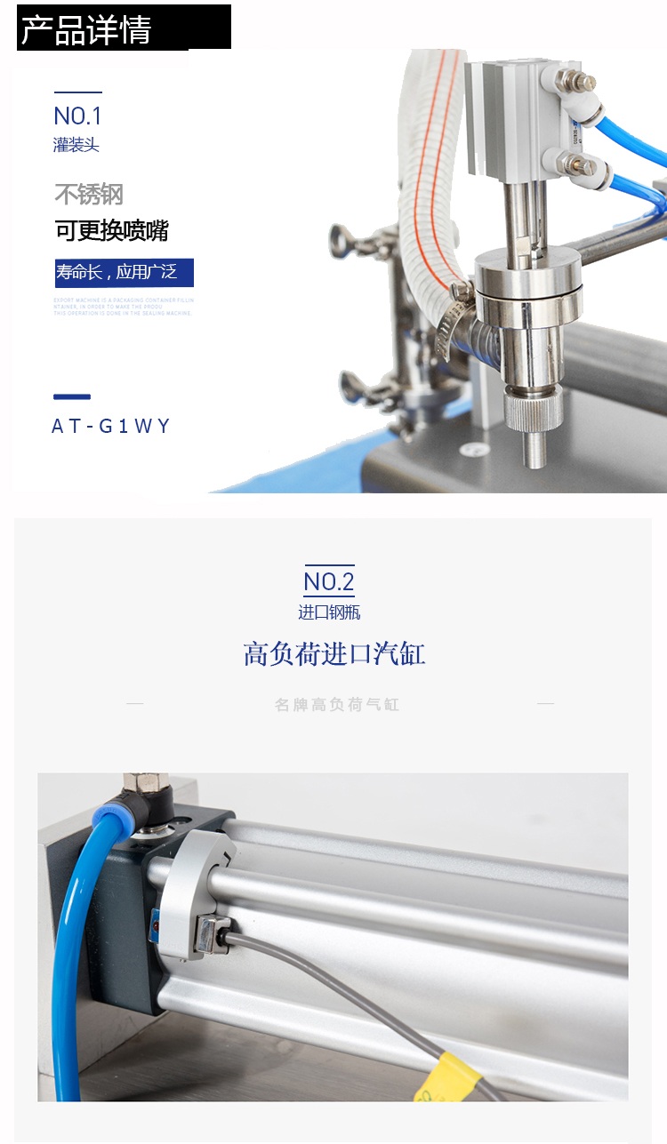 小型半自動單頭液體灌裝機氣缸細節展示